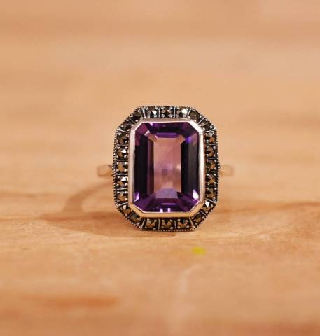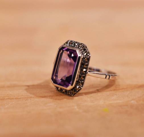 Bague améthyste et Marcassite sur argent 925