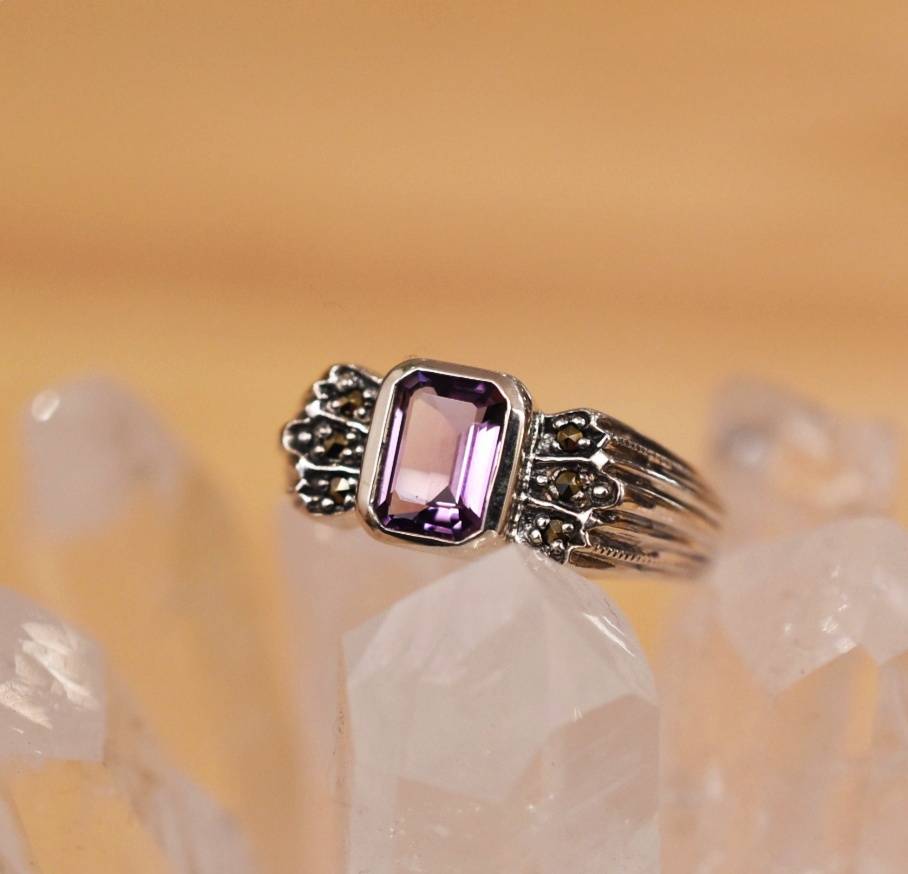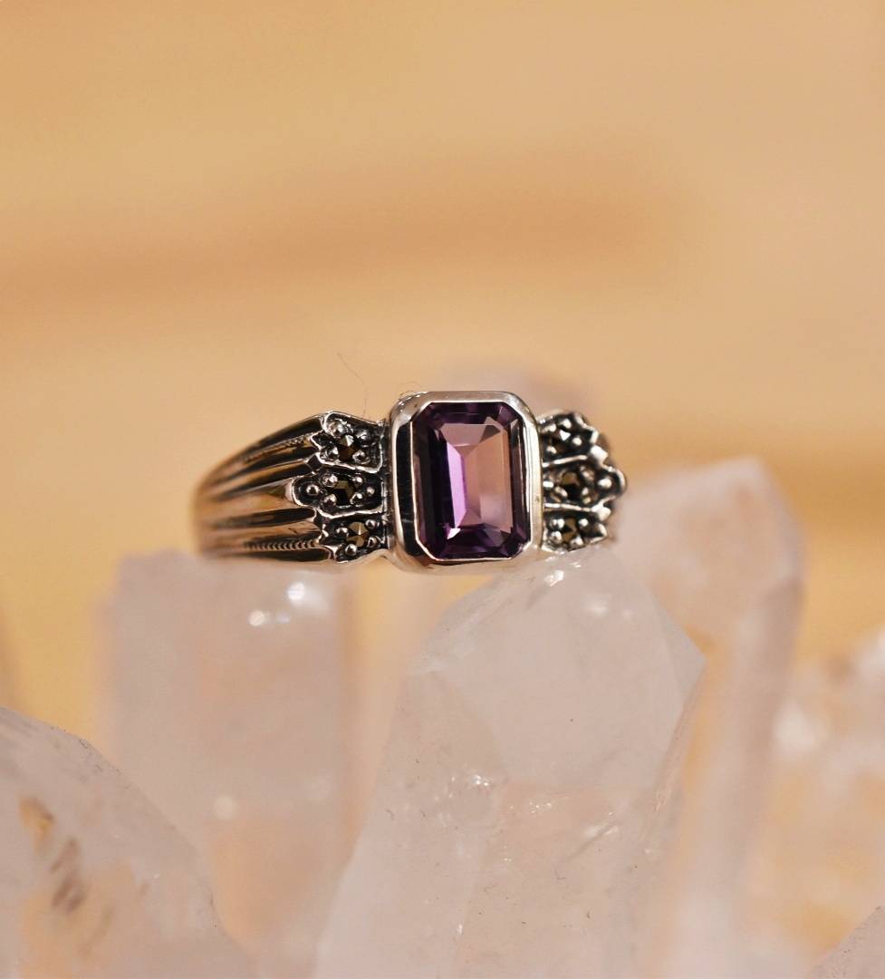 Bague améthyste et Marcassite sur argent 925