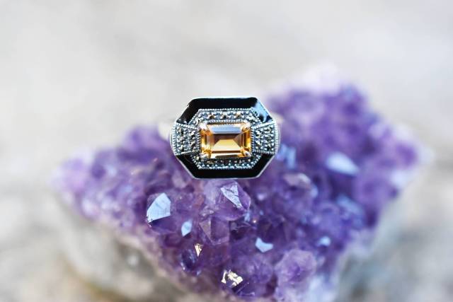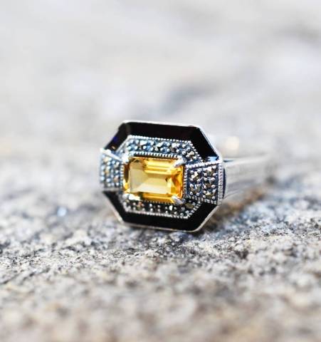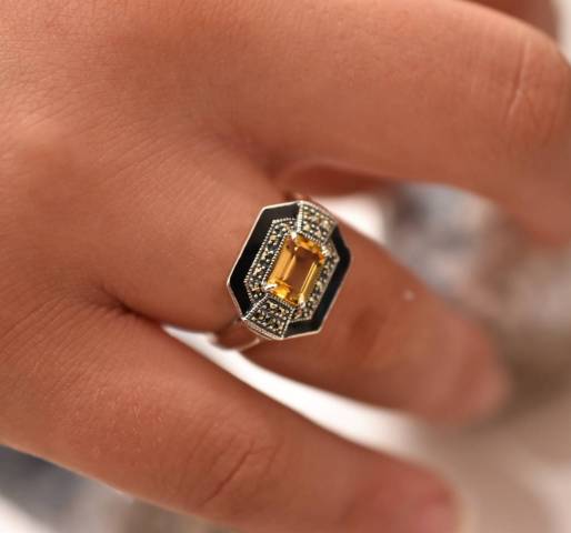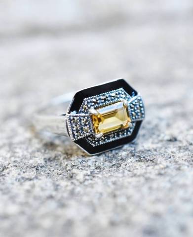 Bague Citrine et Marcassite sur argent 925
