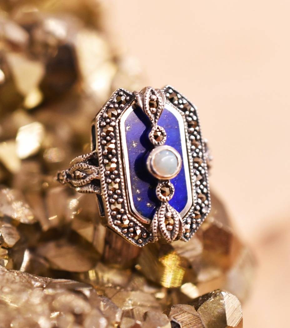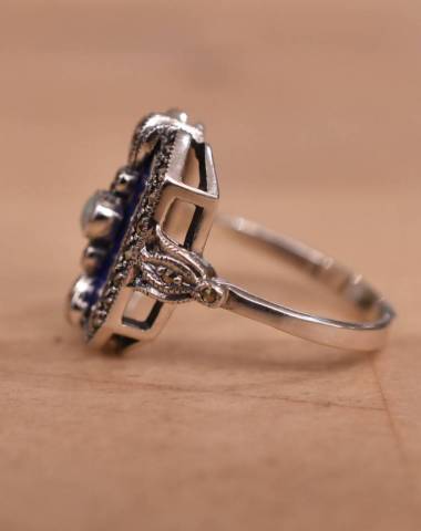 Bague Lapis lazuli, marcassite et argent 925