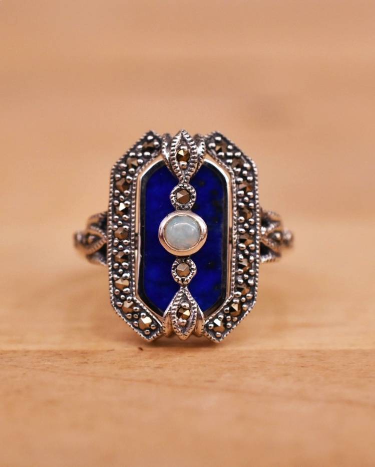 Bague Lapis Lazuli et Marcassite et opale sur argent 925