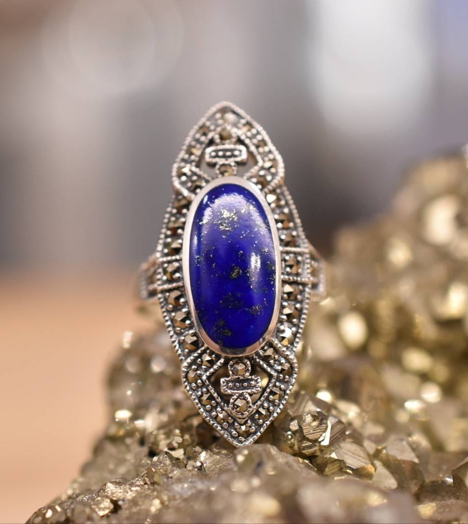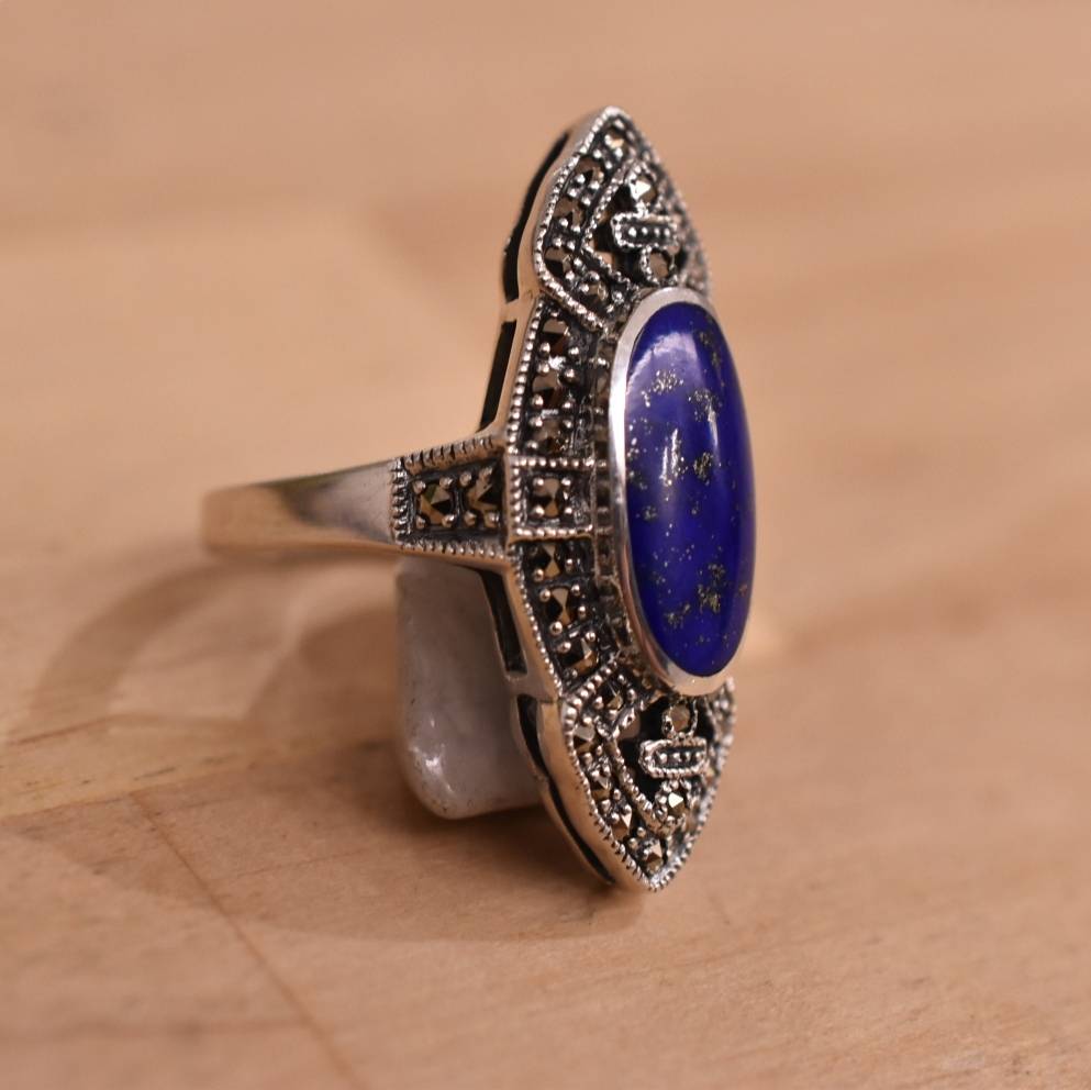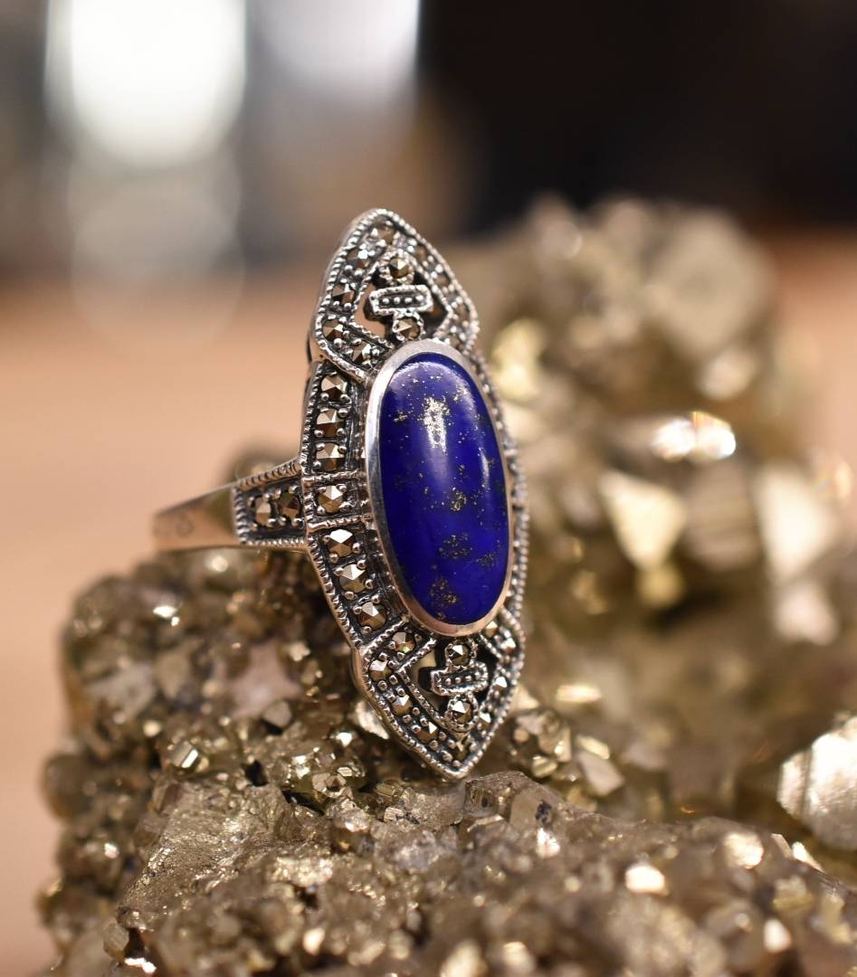Bague Lapis Lazuli et Marcassite sur argent 925