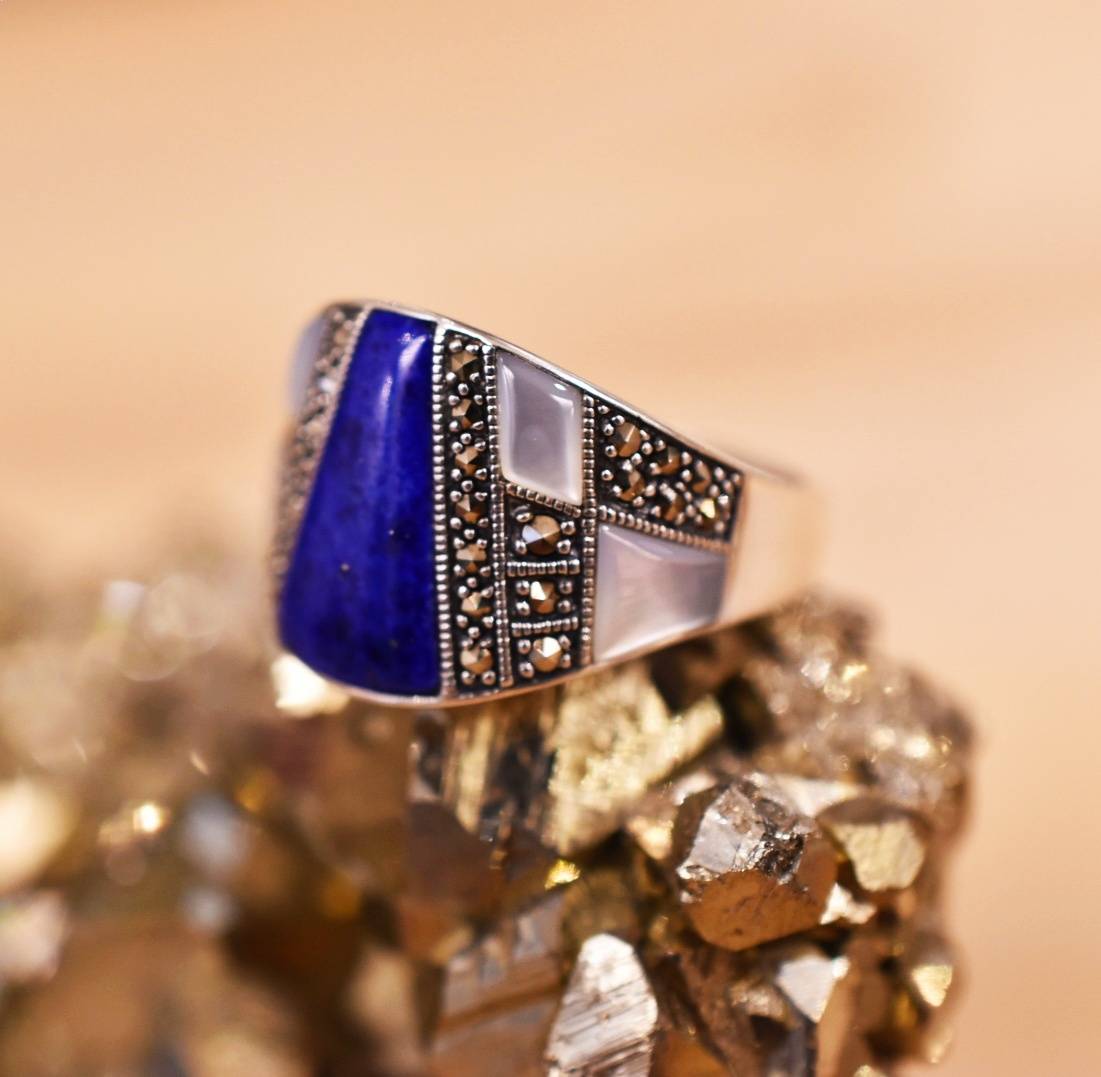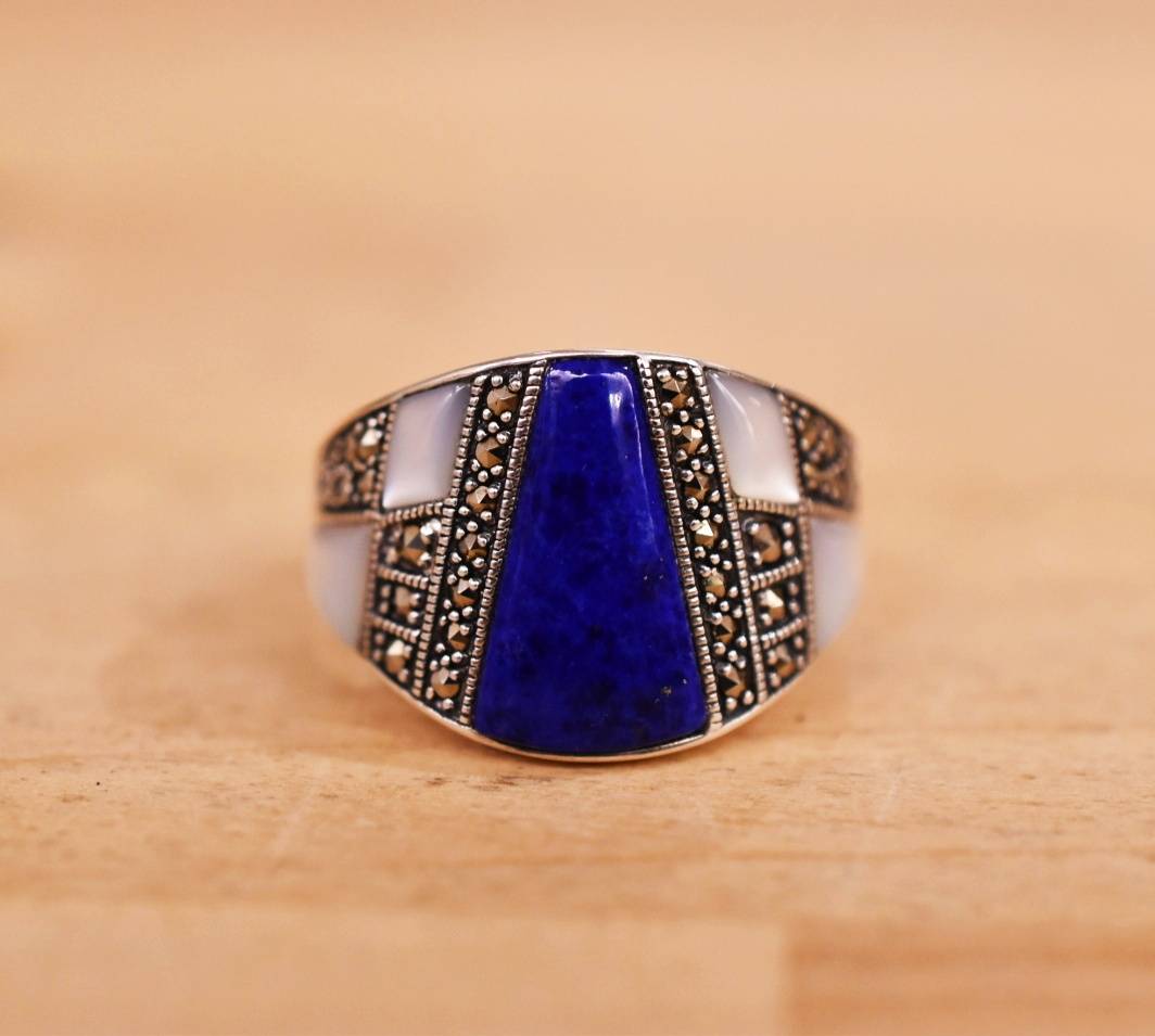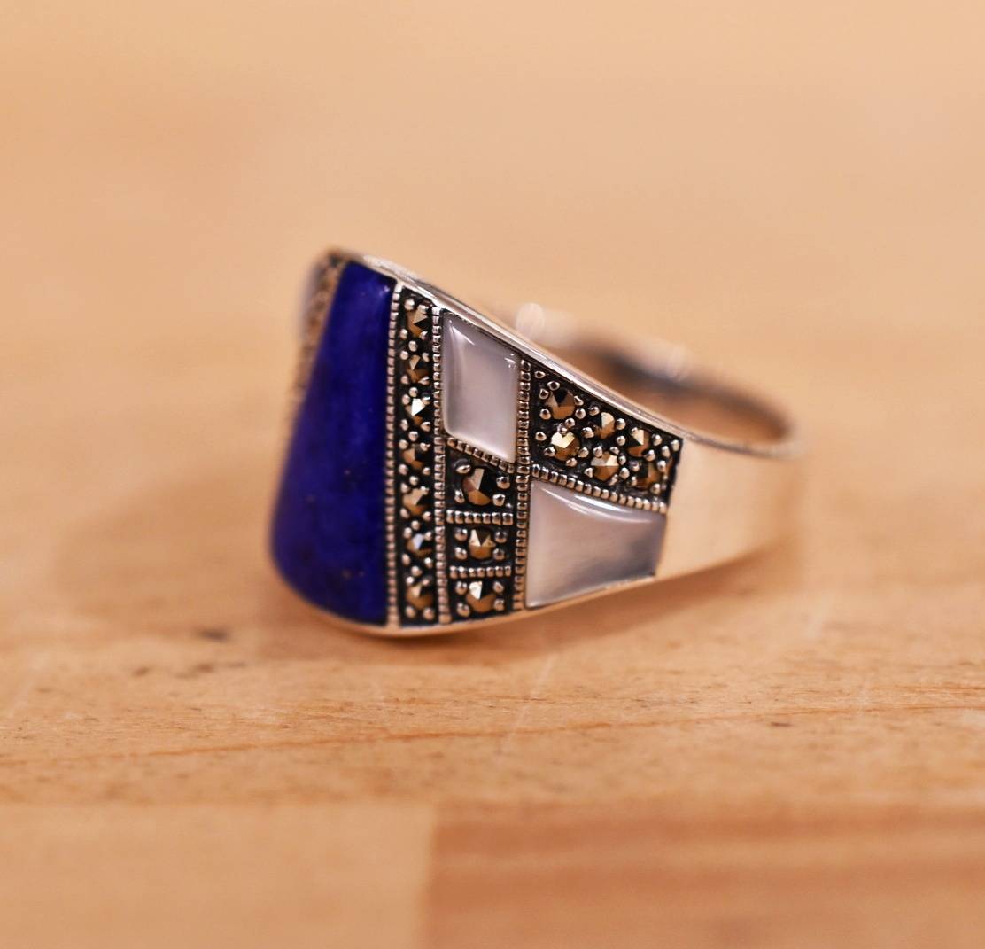 Bague Lapis Lazuli et Marcassite sur argent 925