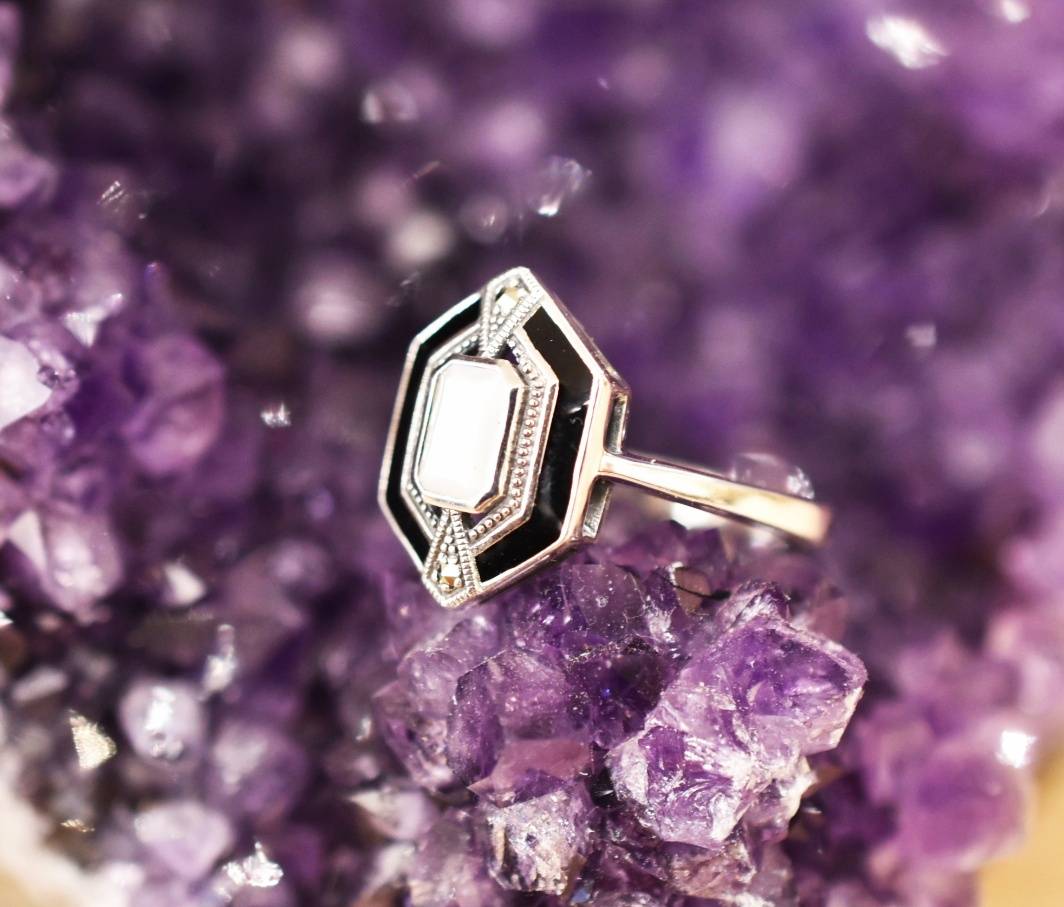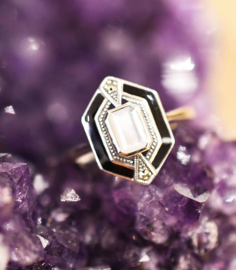 Bague Nacre et Marcassite sur argent 925