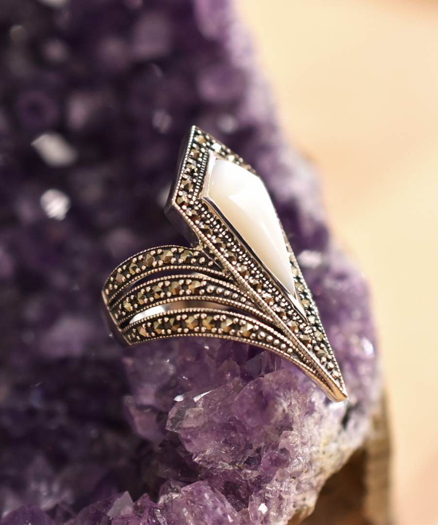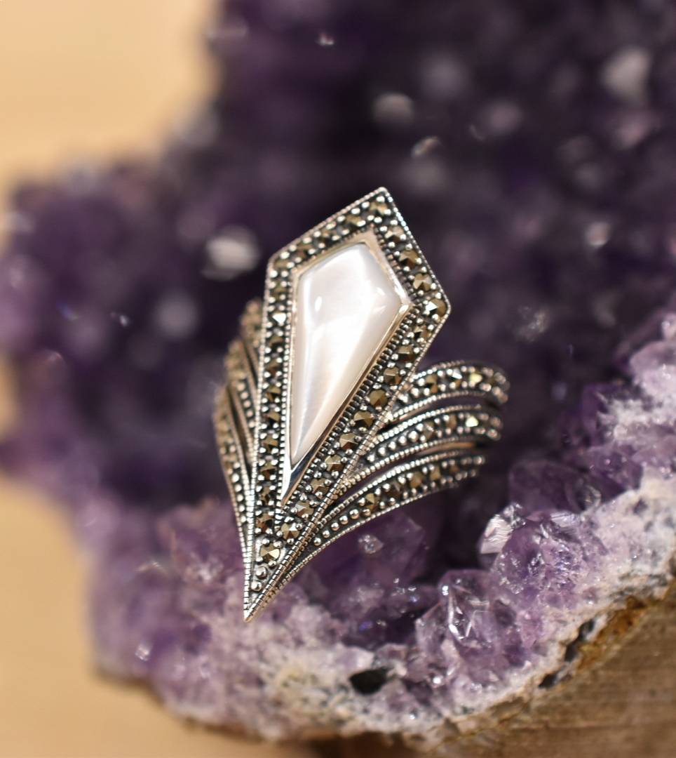Bague Nacre et Marcassite sur argent 925